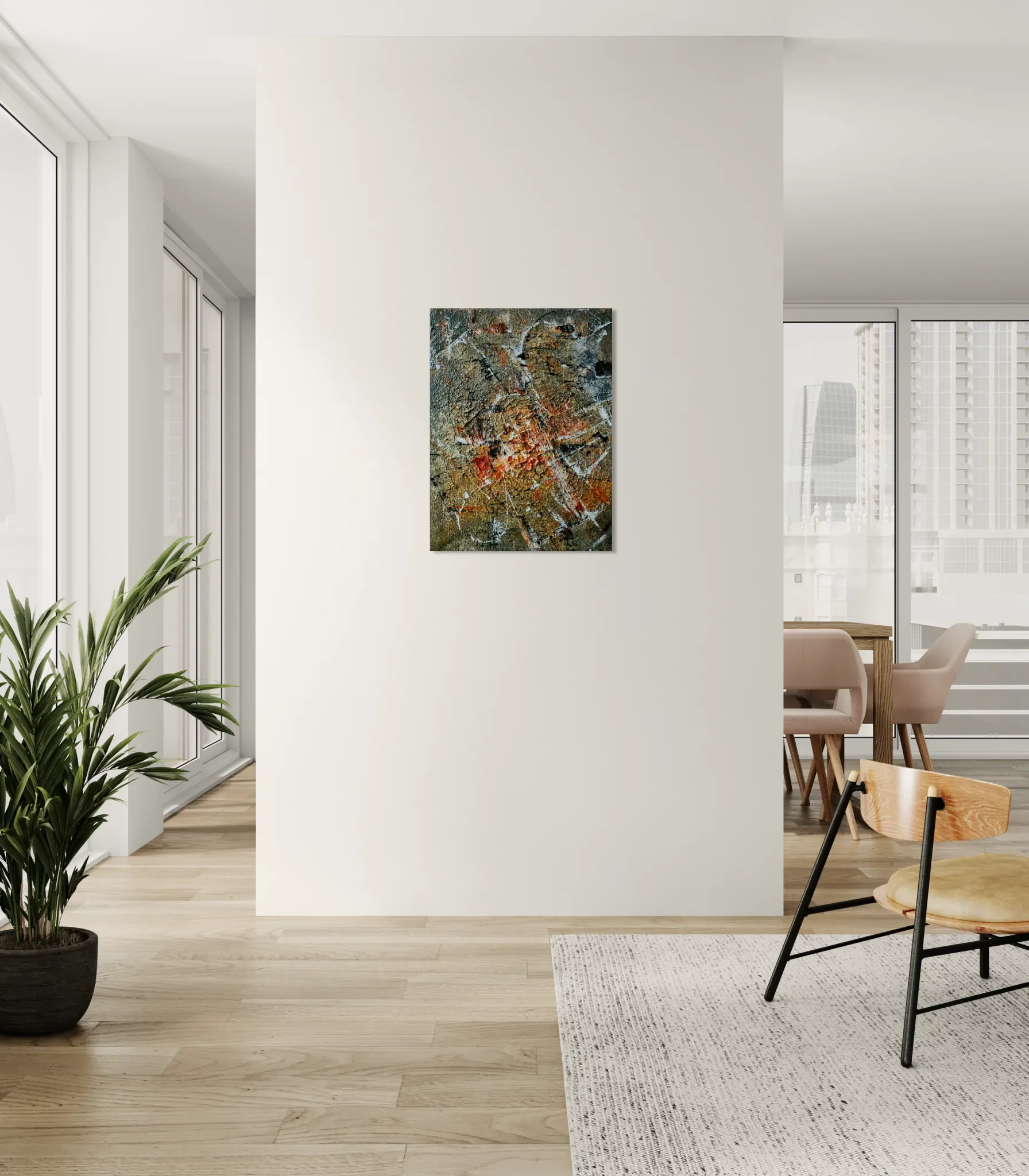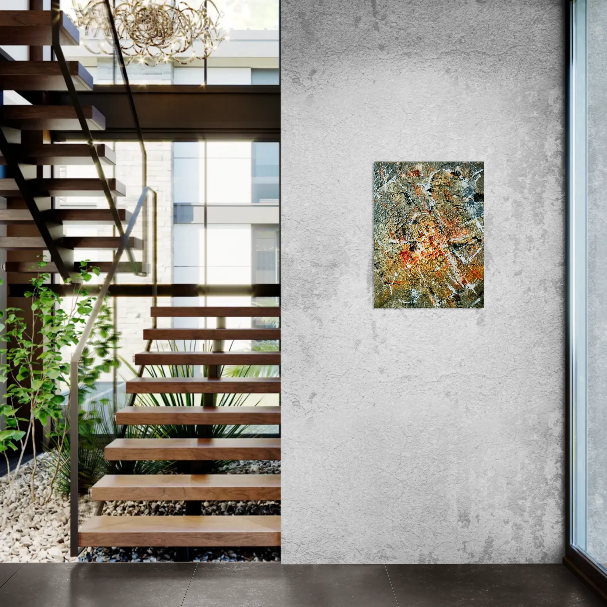 The artwork’s rocky grey texture resembles the surface of a distant planet, while the bold orange center symbolizes warmth, passion, and creativity. White and black accents bring balance and contrast, just like the mix of emotions and experiences that shape every artist’s path. This piece is more than an abstract painting; it’s a story of inspiration, gratitude, and the powerful impact one person can have on your life.